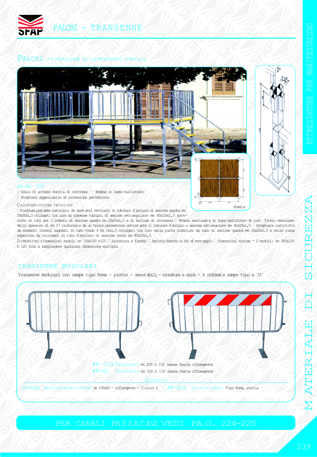 Lunghezza mt 1 – altezza mt 1 – peso kg 8,5 – banda rifrangente B/R adesiva cm 62  altezza 14 (solo su un lato), possibilità inserimento pubblicitario:
